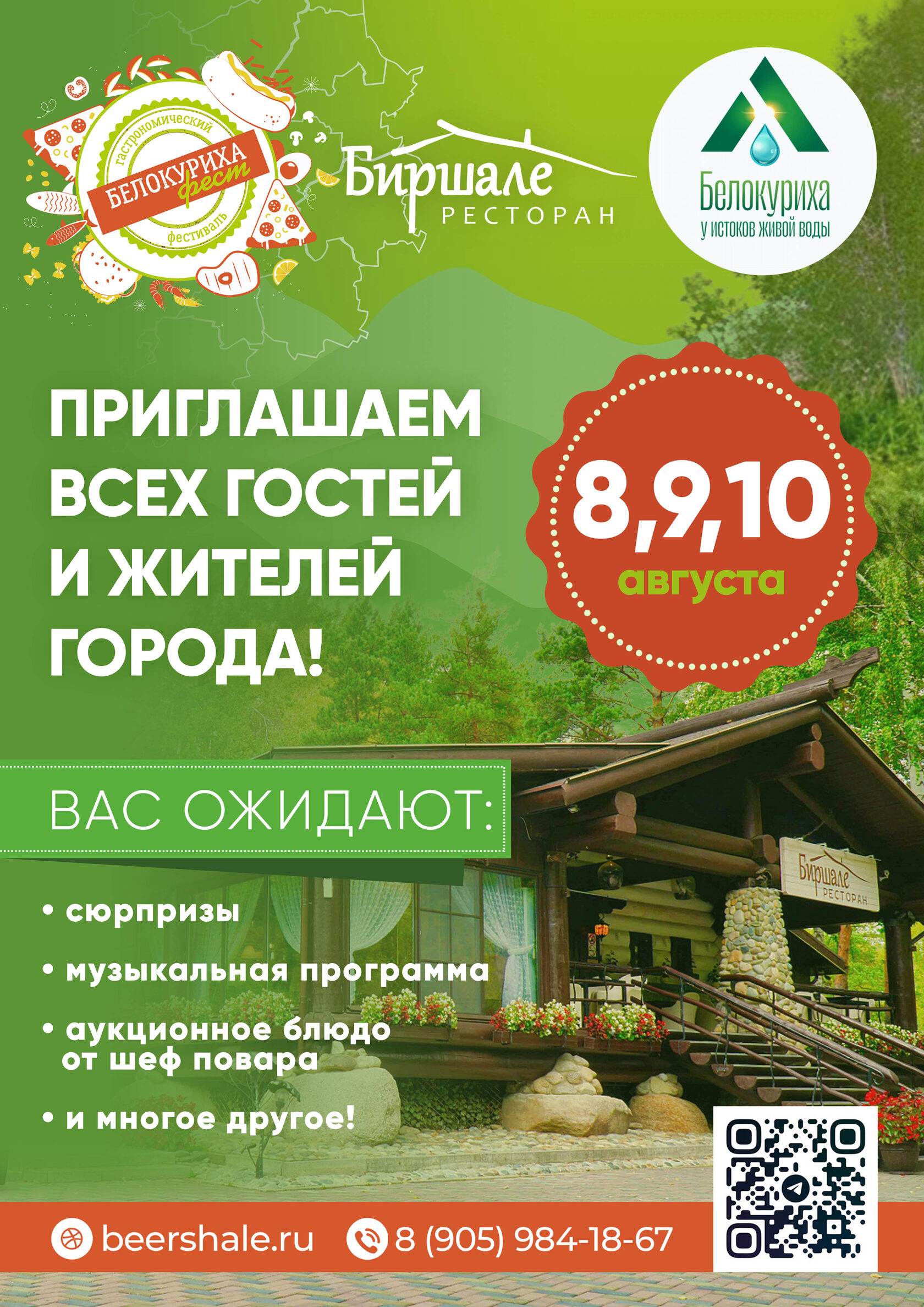 Летнее событие "Белокуриха фест". Путешествие по главным ресторанам города. Сюрпризы, муз. программа, аукционное блюдо и многое другое.